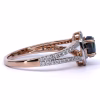 Split band halo ring design. Oval natural black Australian opal set with accenting natural diamonds. Solid 14ct rose gold. Featuring blue & green flashes of colour, body tone N2 B5, gem grade.