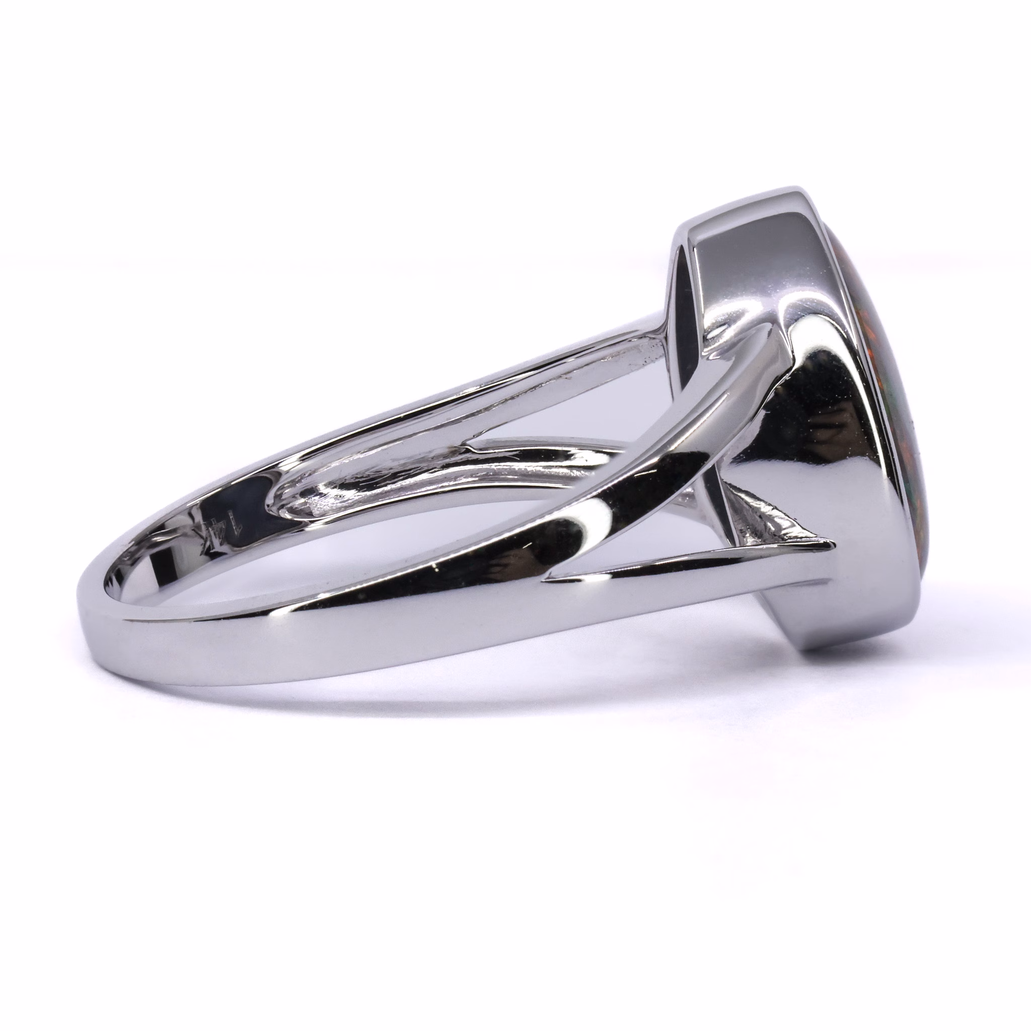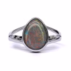 Pear-cut natural black Australian opal ring. Solid 14ct white gold. Featuring red, blue & green flashes of colour, body tone N5 B4.