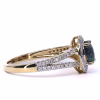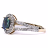 Split band halo ring design. Oval natural black Australian opal set with accenting natural diamonds. Solid 14ct yellow gold. Featuring blue & green flashes of colour, body tone N2 B3.