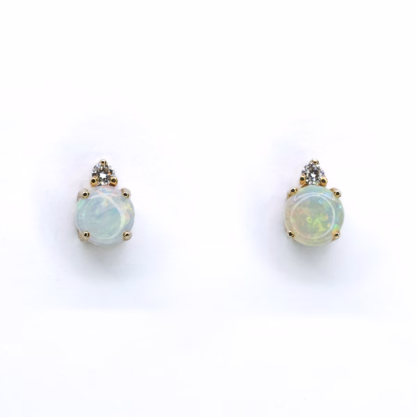 14ct Yellow Gold Solid White Opal and Diamond Earrings
