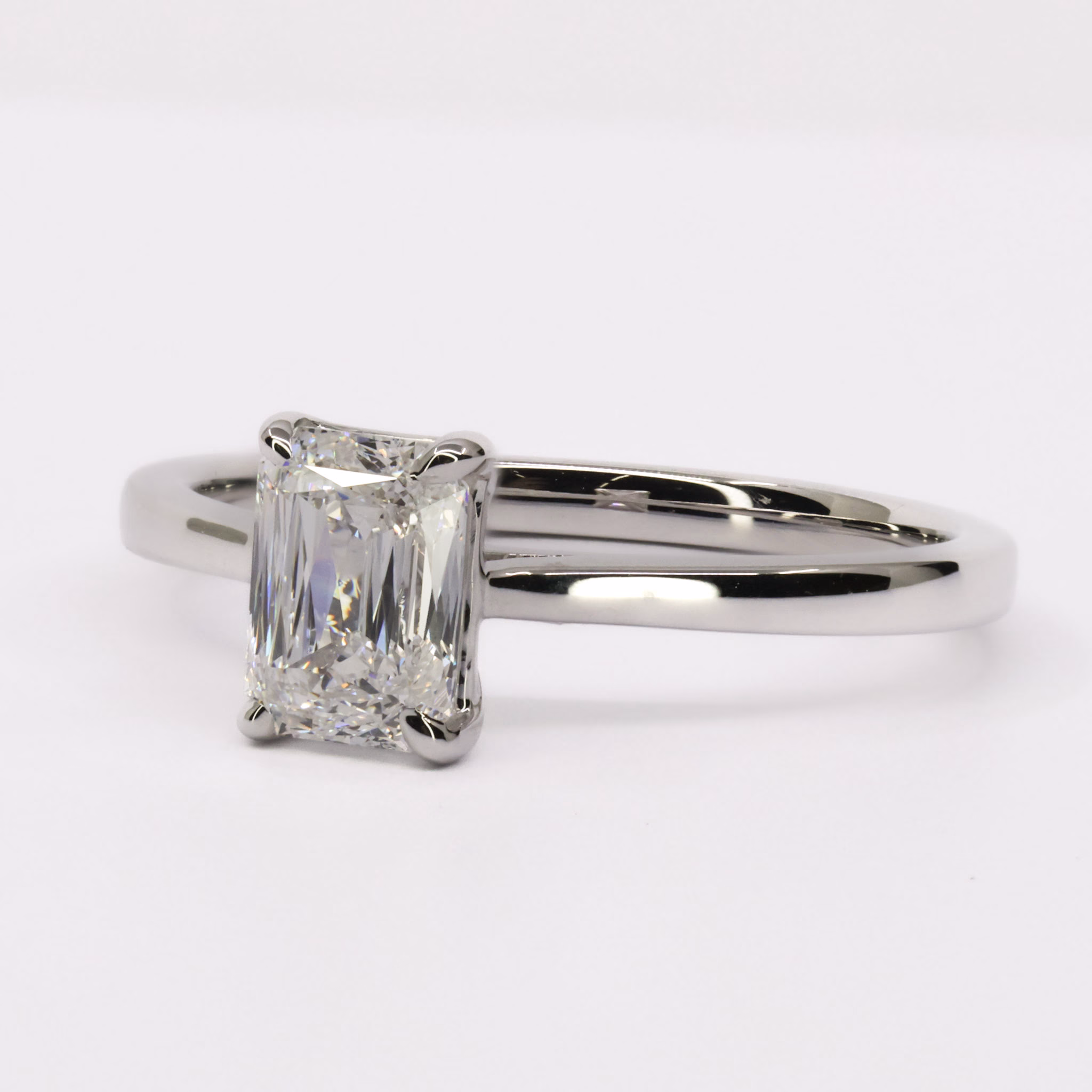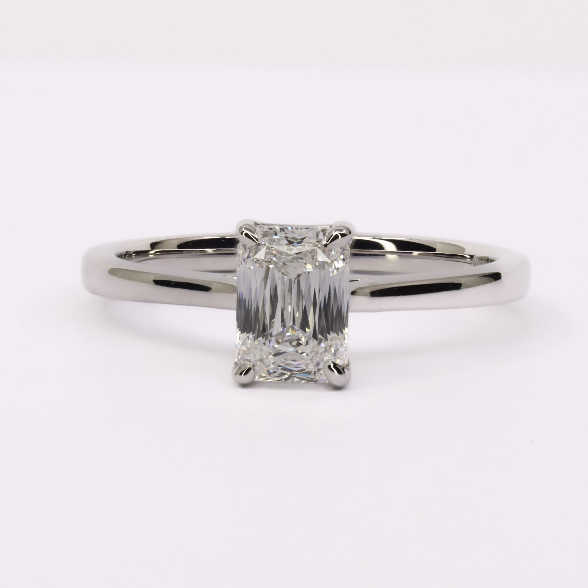 | Centre Stone Specs | Emerald-cut, 1.03ct D/VVS2 |