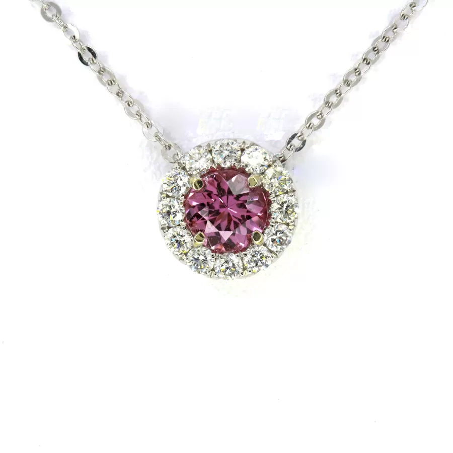18ct White Gold Pink Topaz and Diamond Pendant, with adjustable chain.
