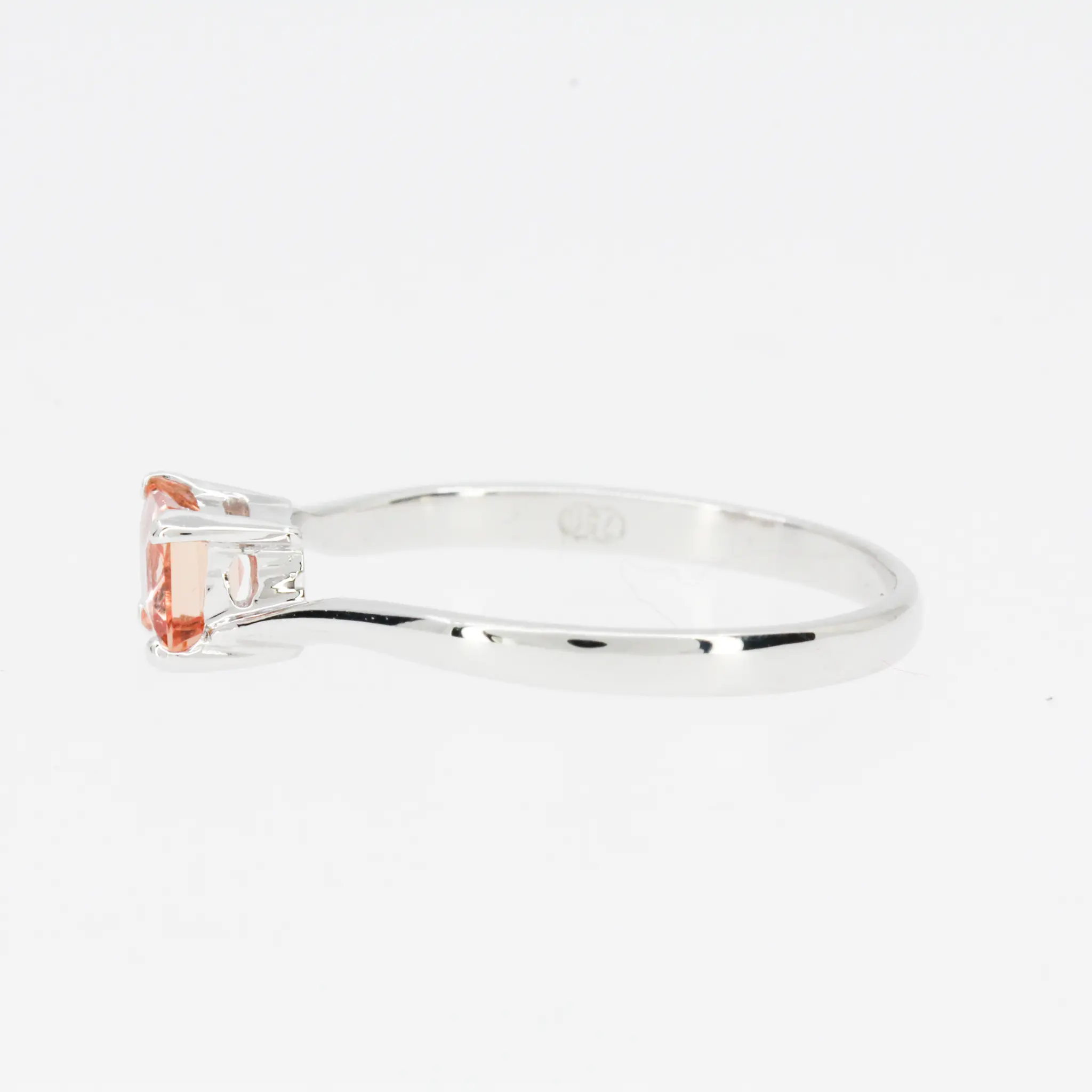 Delicate style square solitaire design ring. Square-cut pink topaz of natural origin. Solid 18ct white gold.