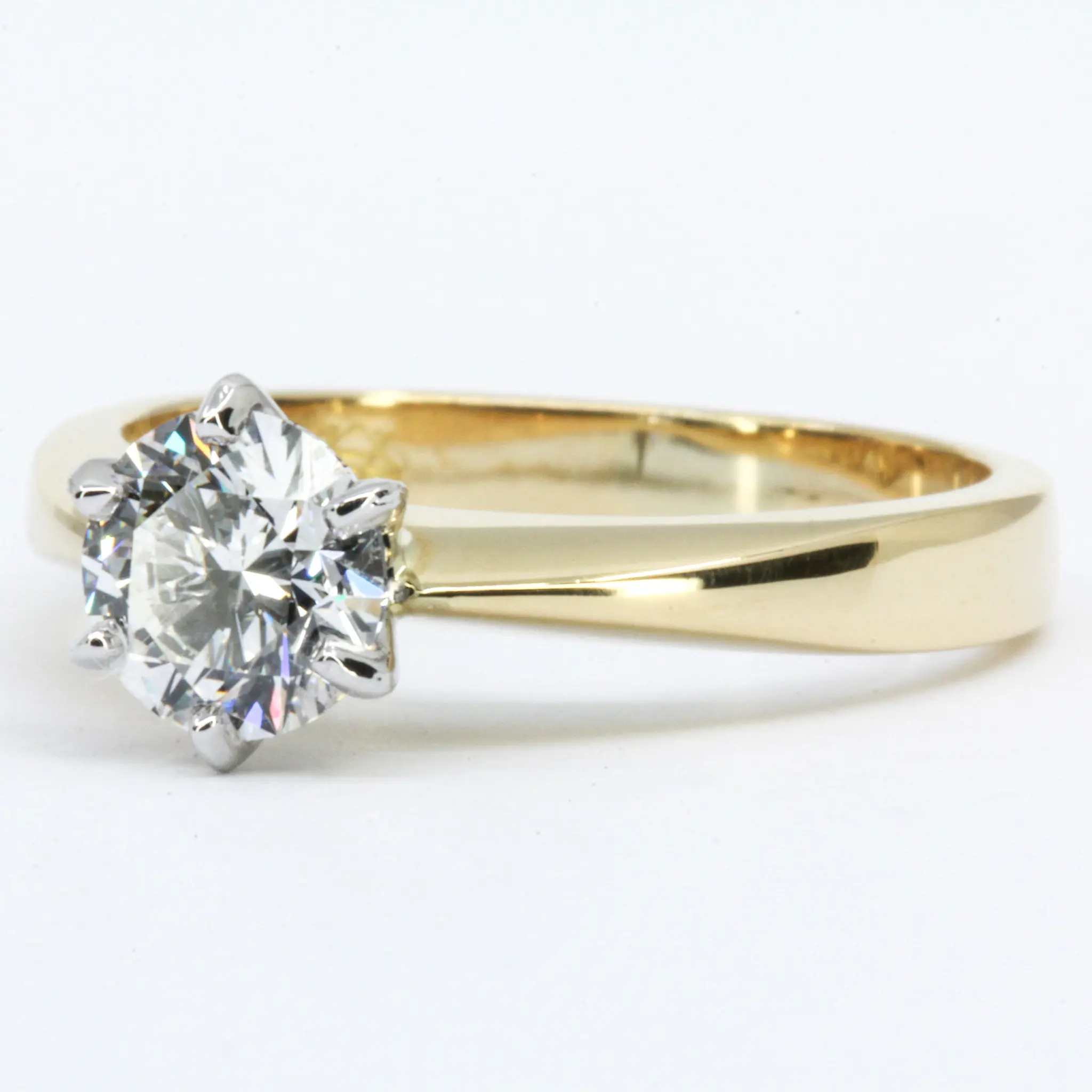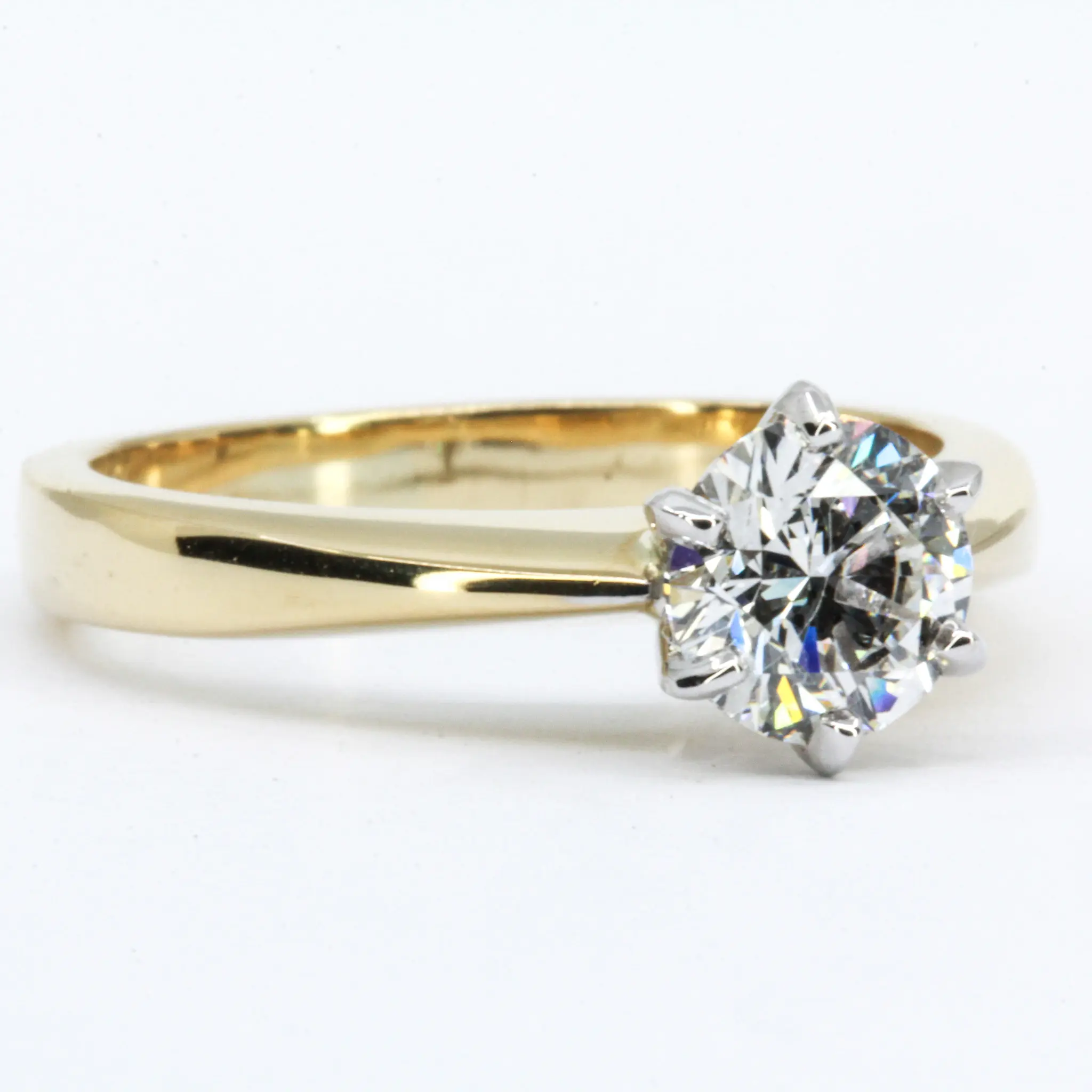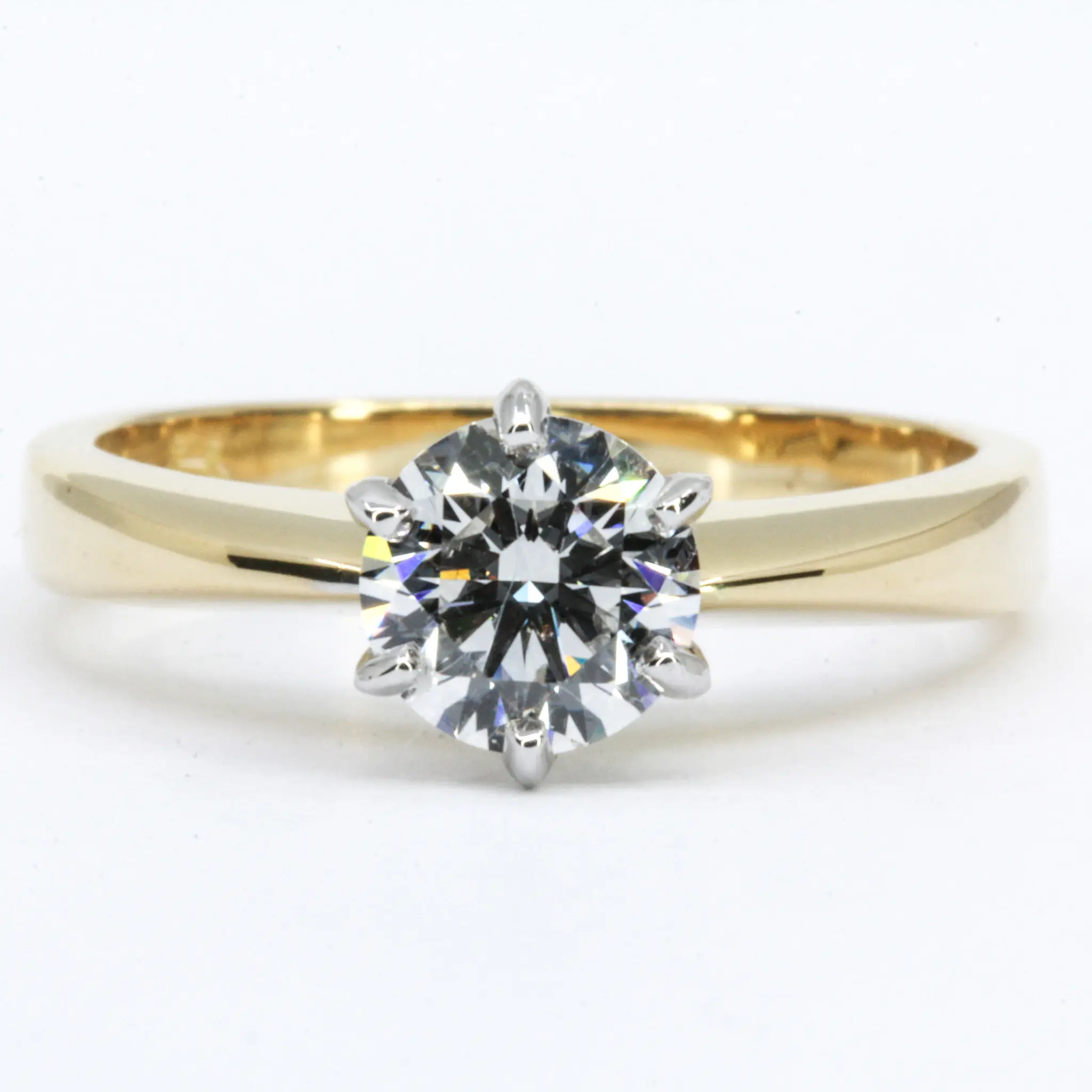 Certified lab grown diamond solitaire in 6 claw prong. Solid 18ct white & yellow gold.