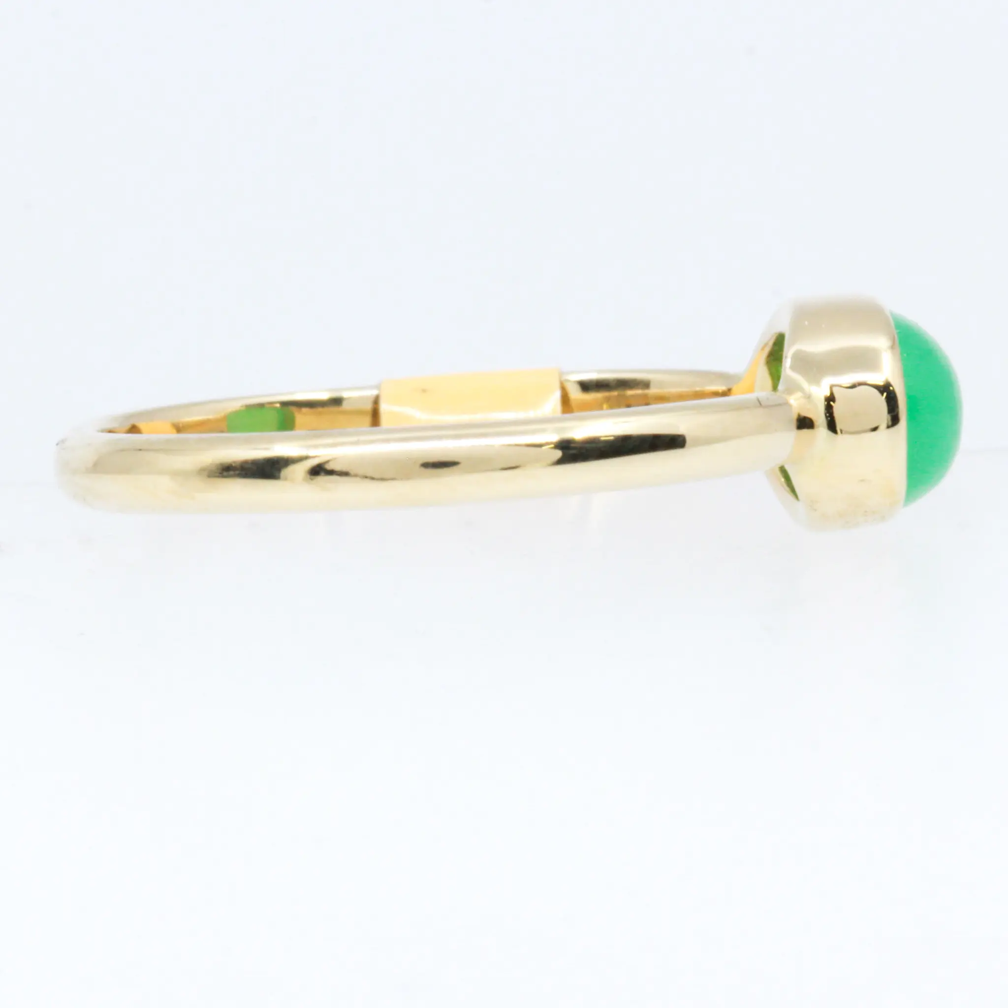 Simple bezel with thin band design ring. Round-cabochon chrysoprase of natural origin. Solid 18ct yellow gold.