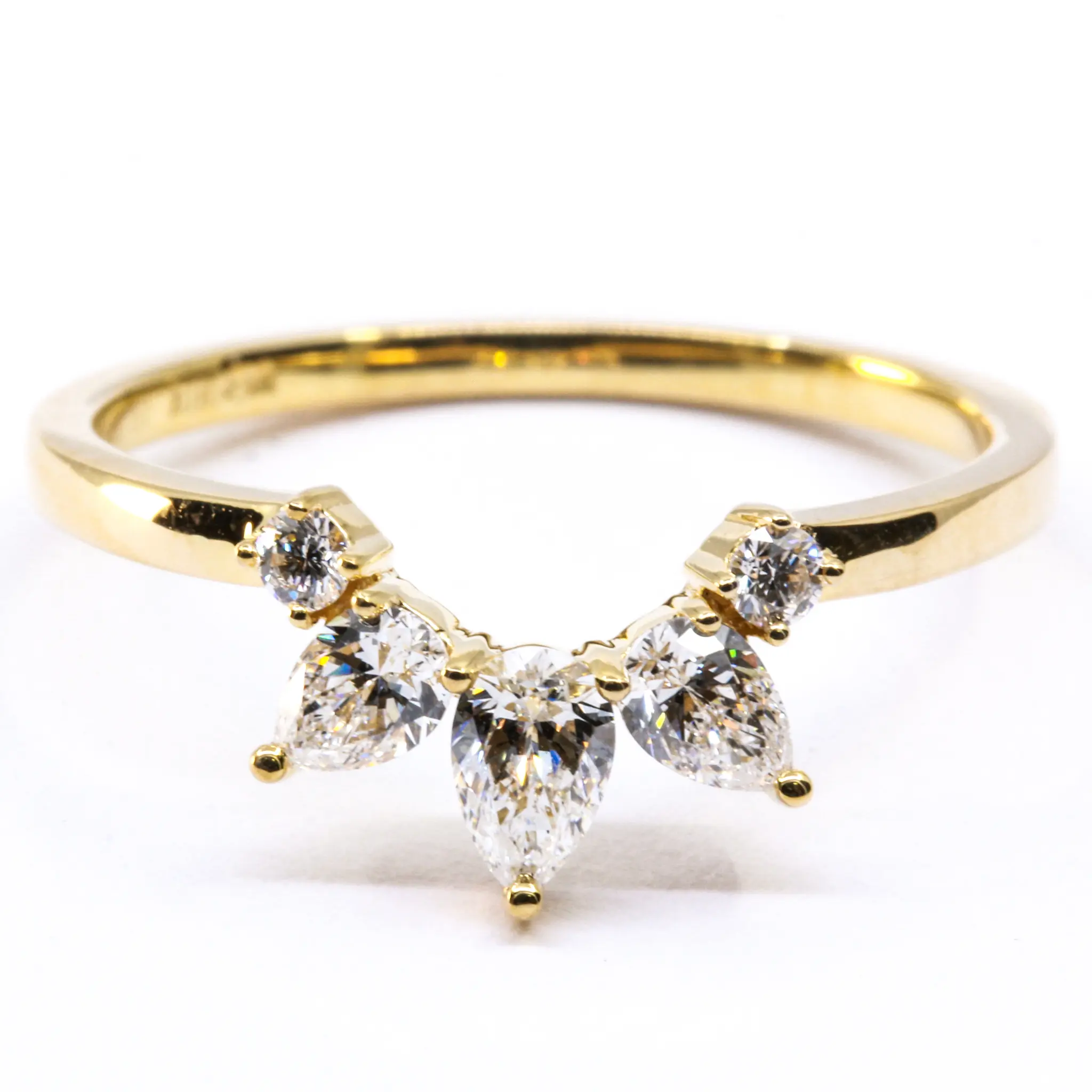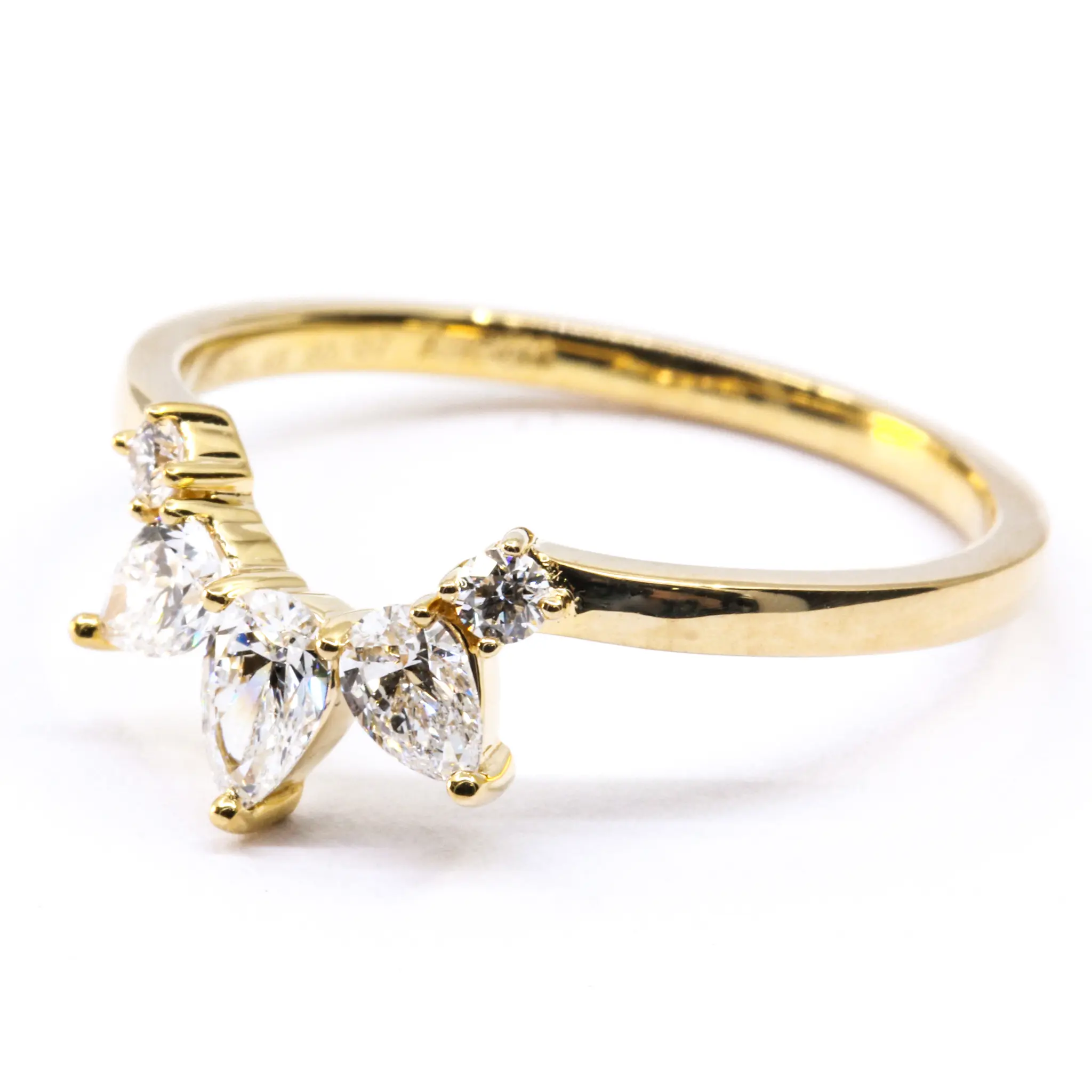 | Side Stone Specs | 2 x Round Brilliant Cut Diamonds = 0.07ct, G/VS2, 3 x Pear-Cut Diamonds = 0.48ct, G/VS2 |