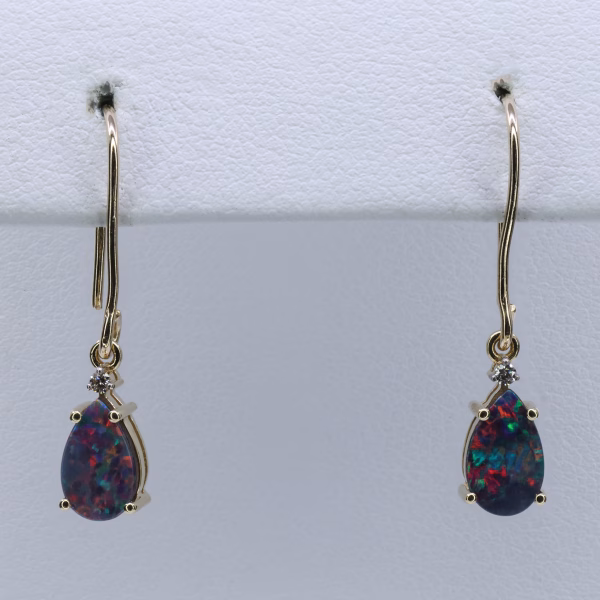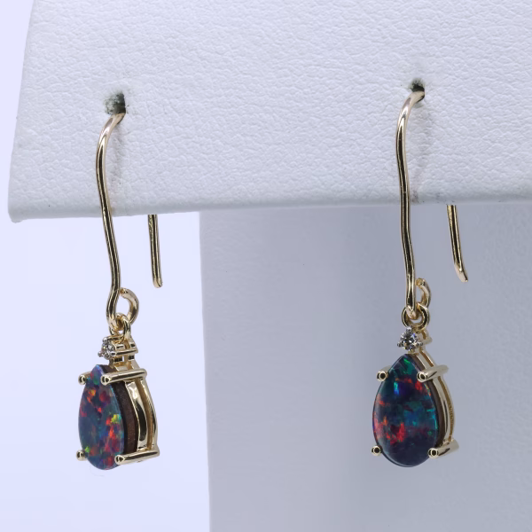 9ct Yellow Gold Opal Doublet and Diamond Drop Earrings